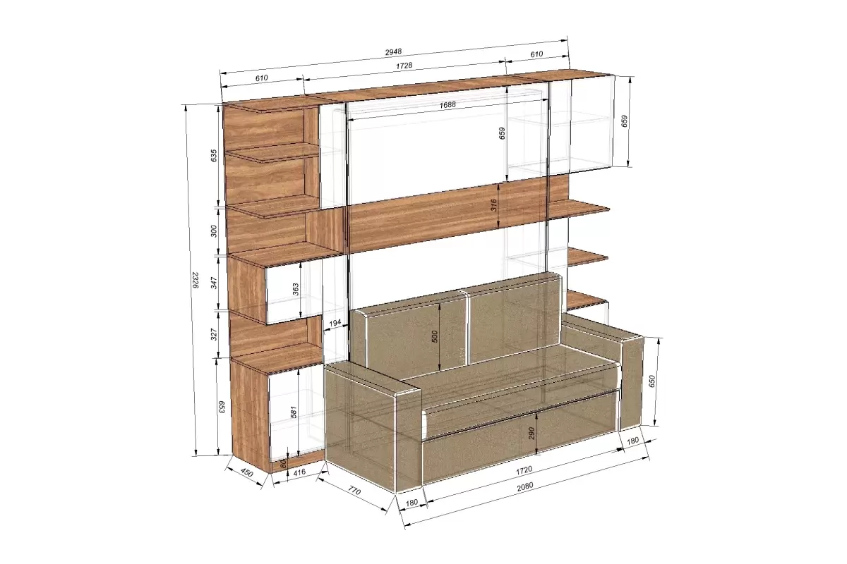 • Корпус и фасад шкаф-кровати, выполненный из ЛДСП;